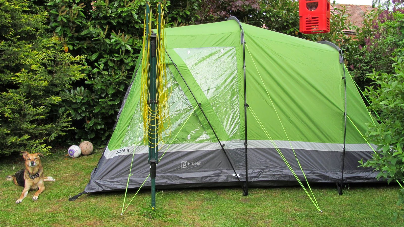 The trial pitching was entertaining. I wanted a tent that I could stand up in and also had room for both me and Holly to sleep comfortably in so I went for a 3 person tent, the guide says the external footprint is 390cm x 230cm and that it is 205cm high. It didn't look very big in the display field, but it was alongside some 4, 6 and above person tents. It looked a lot bigger on my little lawn.